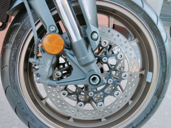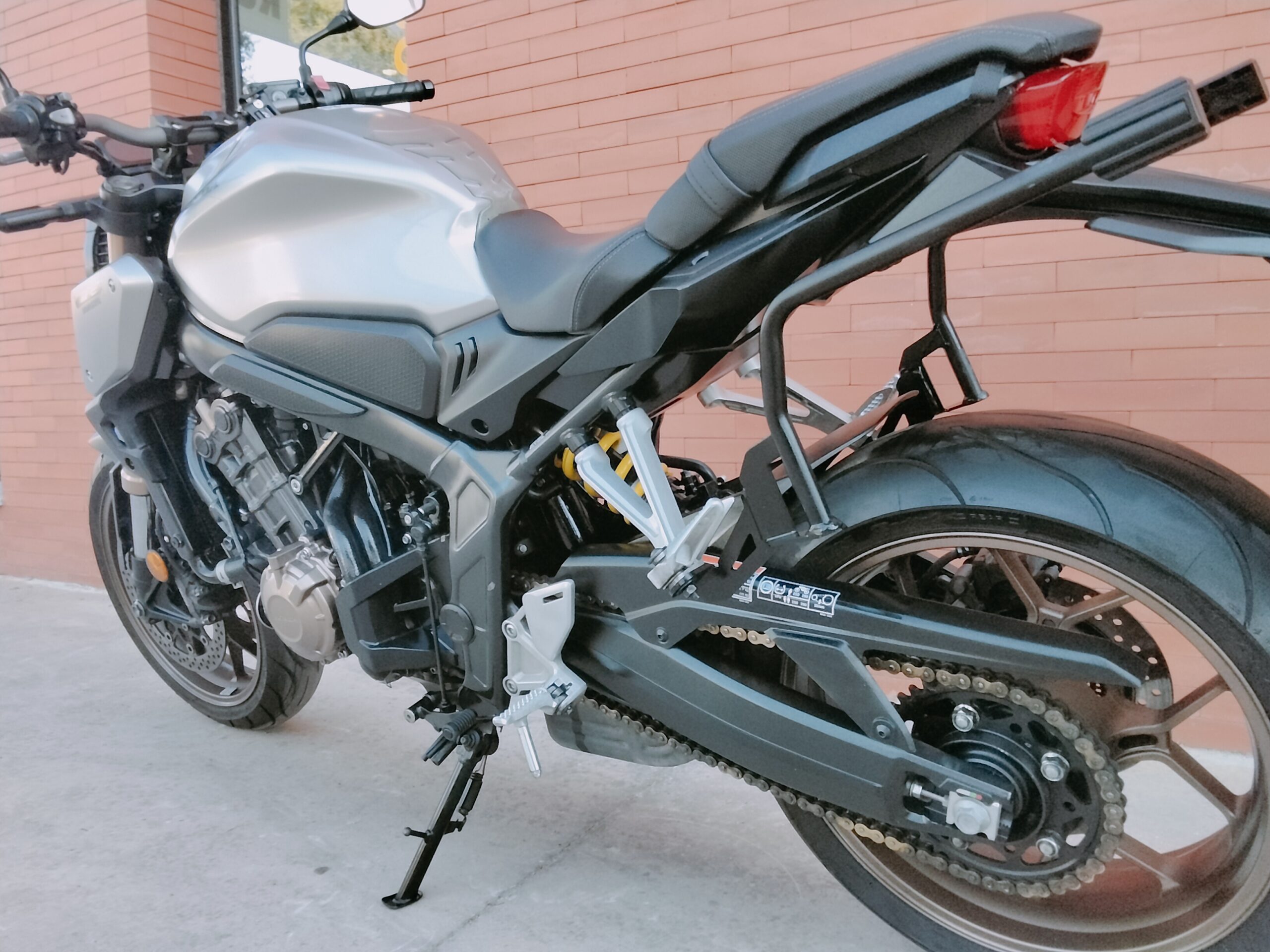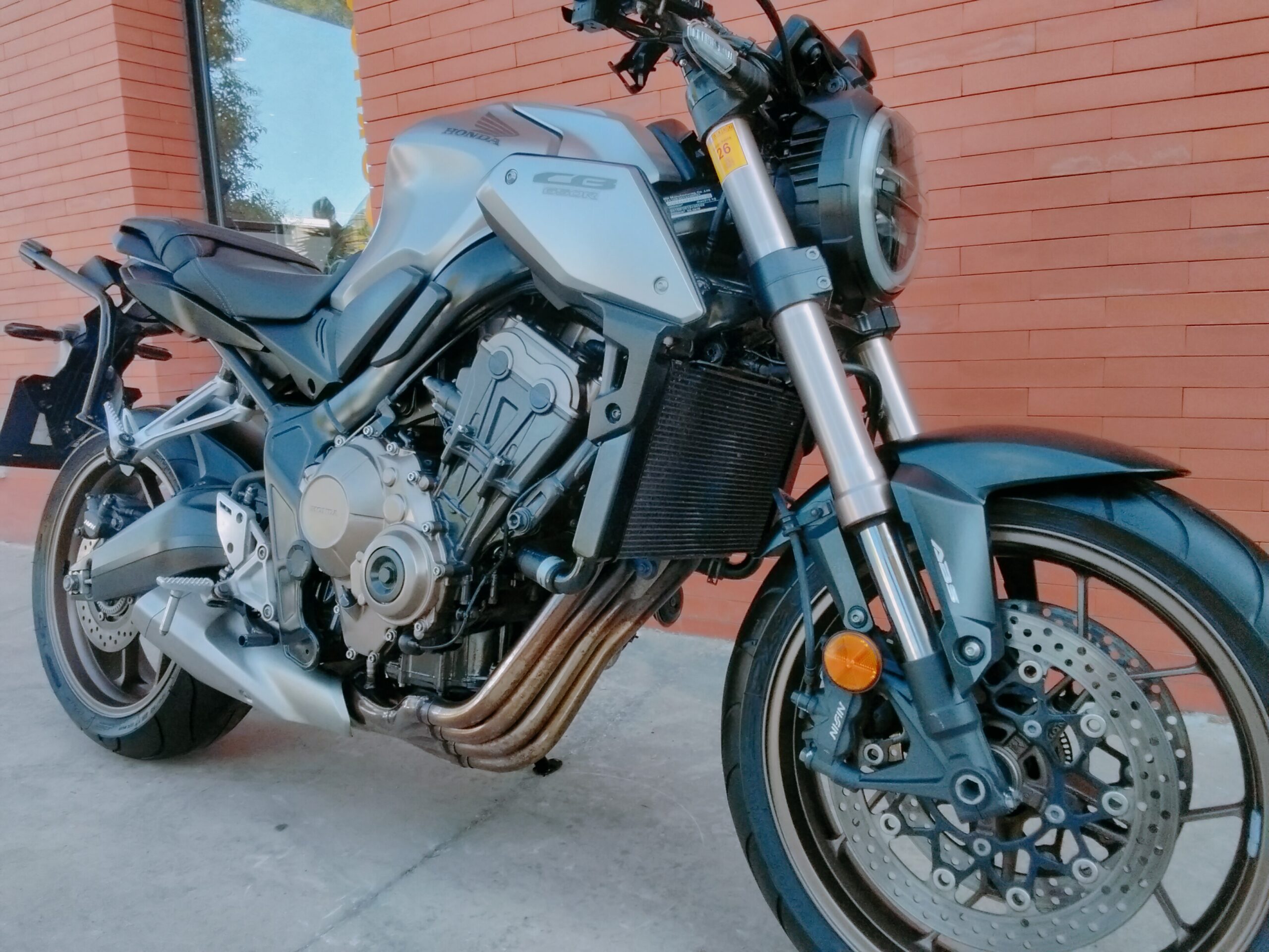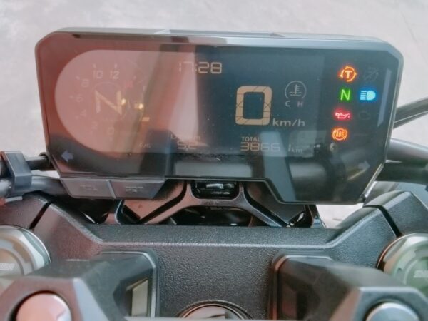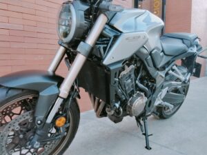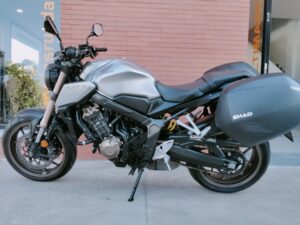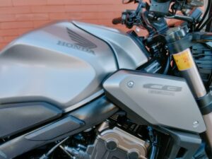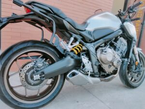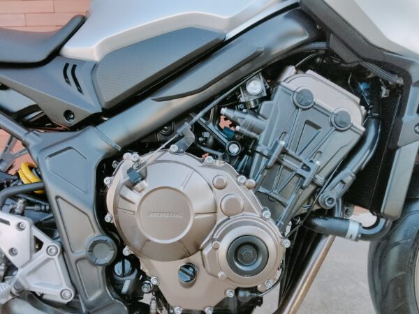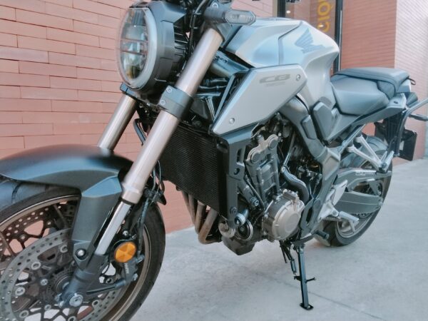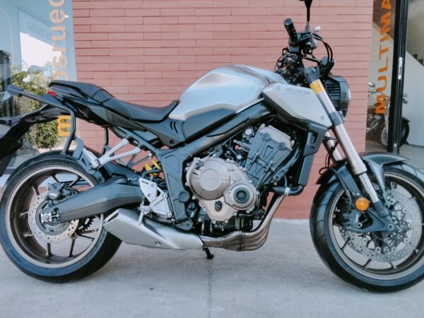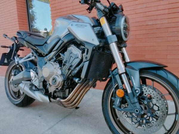 HONDA CB 650 RA, 95 CV., plata, matriculada el 7/2020, con 38.661 Km., ABS, pantalla TFT, luces LED, control de tracción HSTC, recién revisada (hace 1.000Km.), maletas laterales Shad, ITV en vigor hasta Agosto de 2026 y transferencia incluida. Limitable para el A2. GARANTÍA DE 1 AÑO. FINANCIACIÓN.