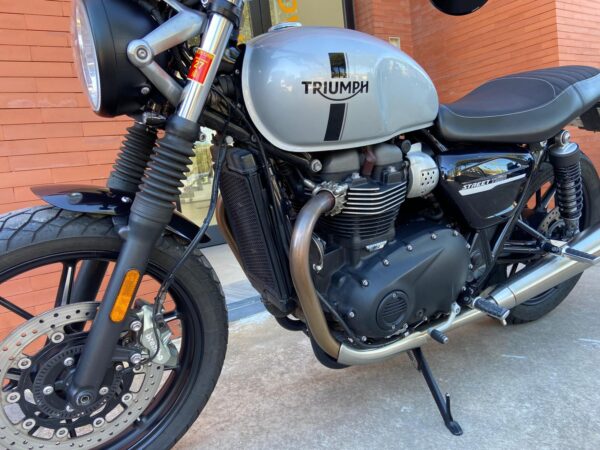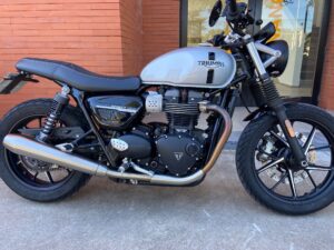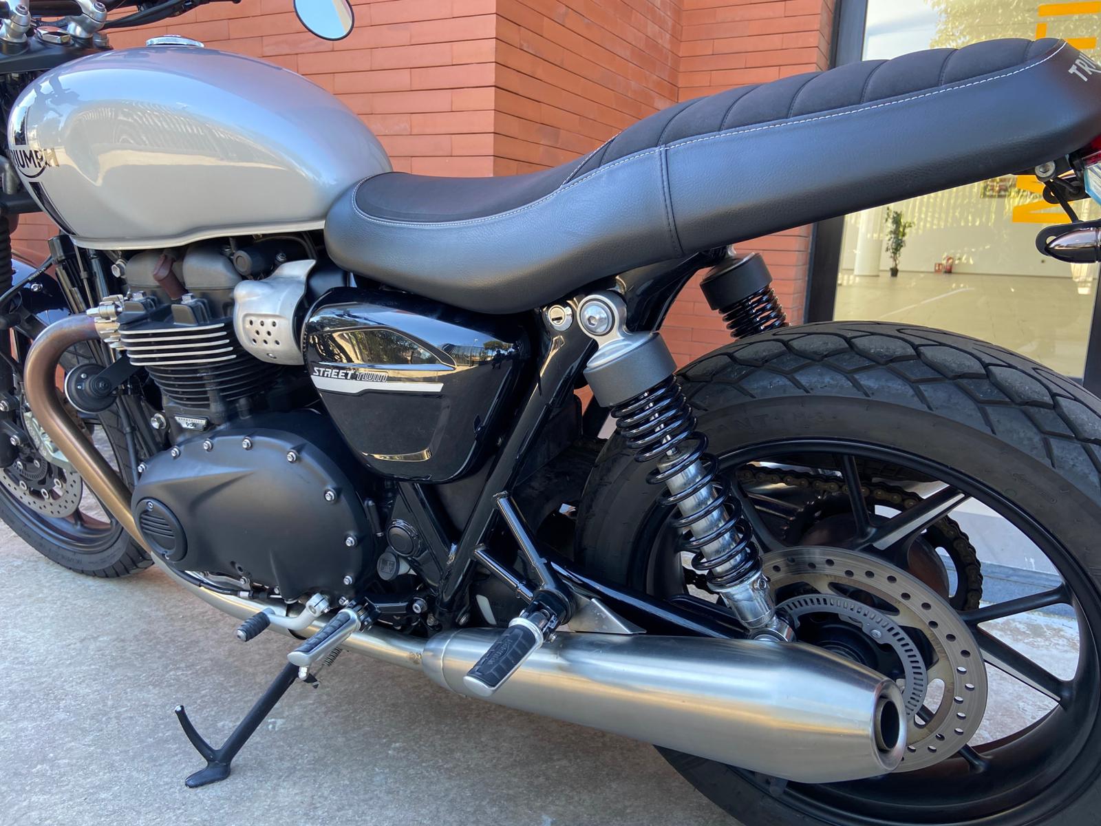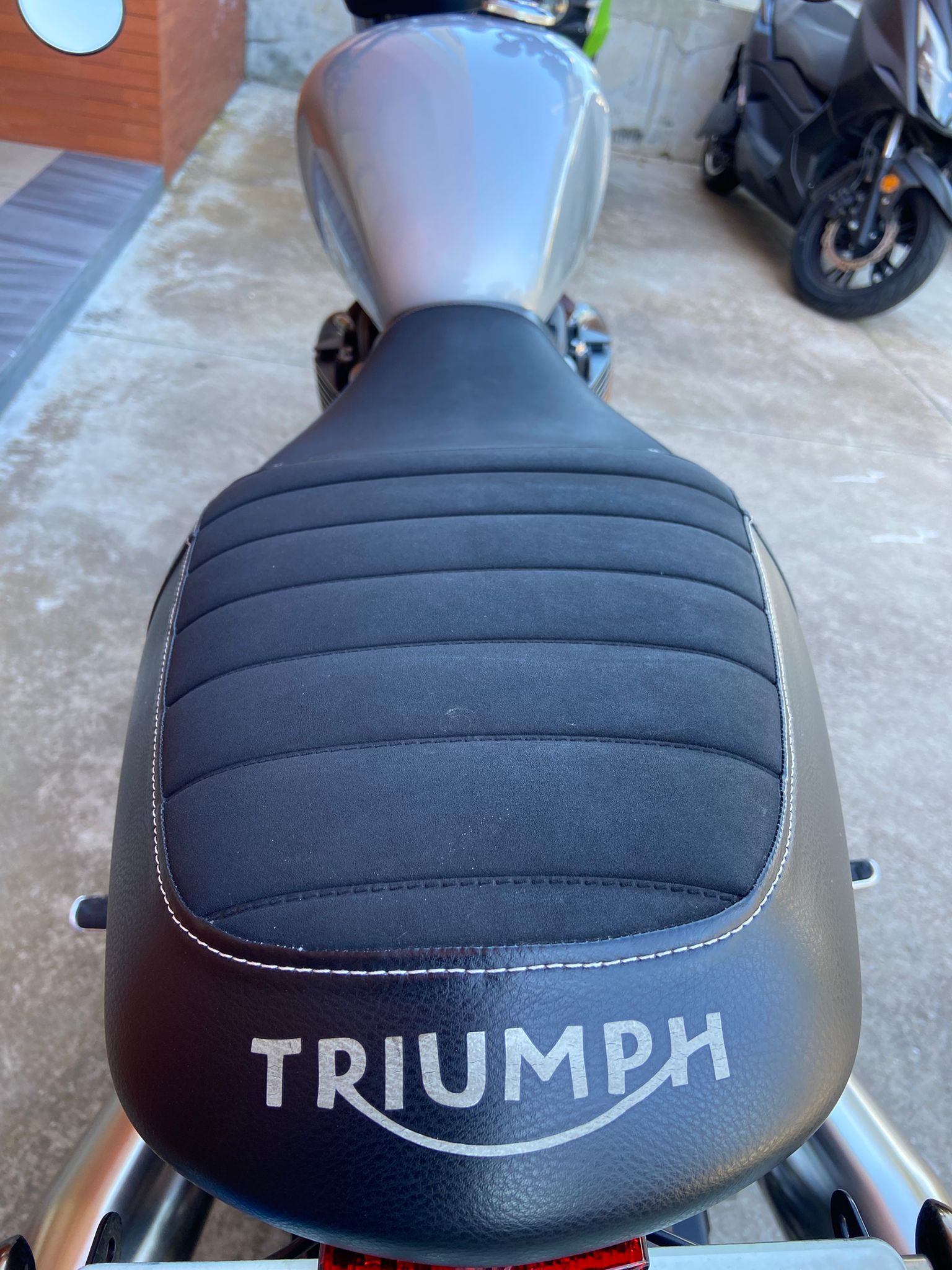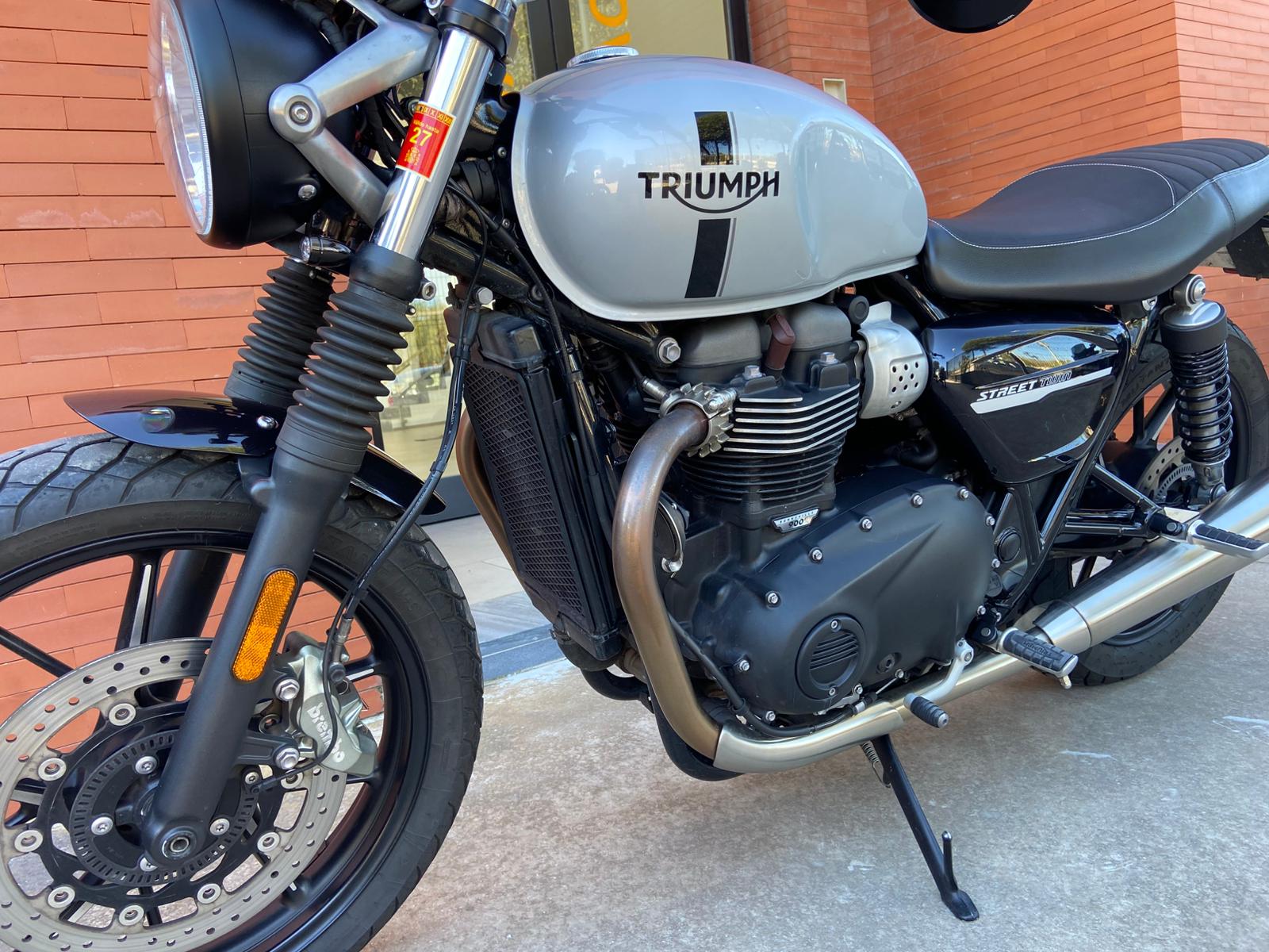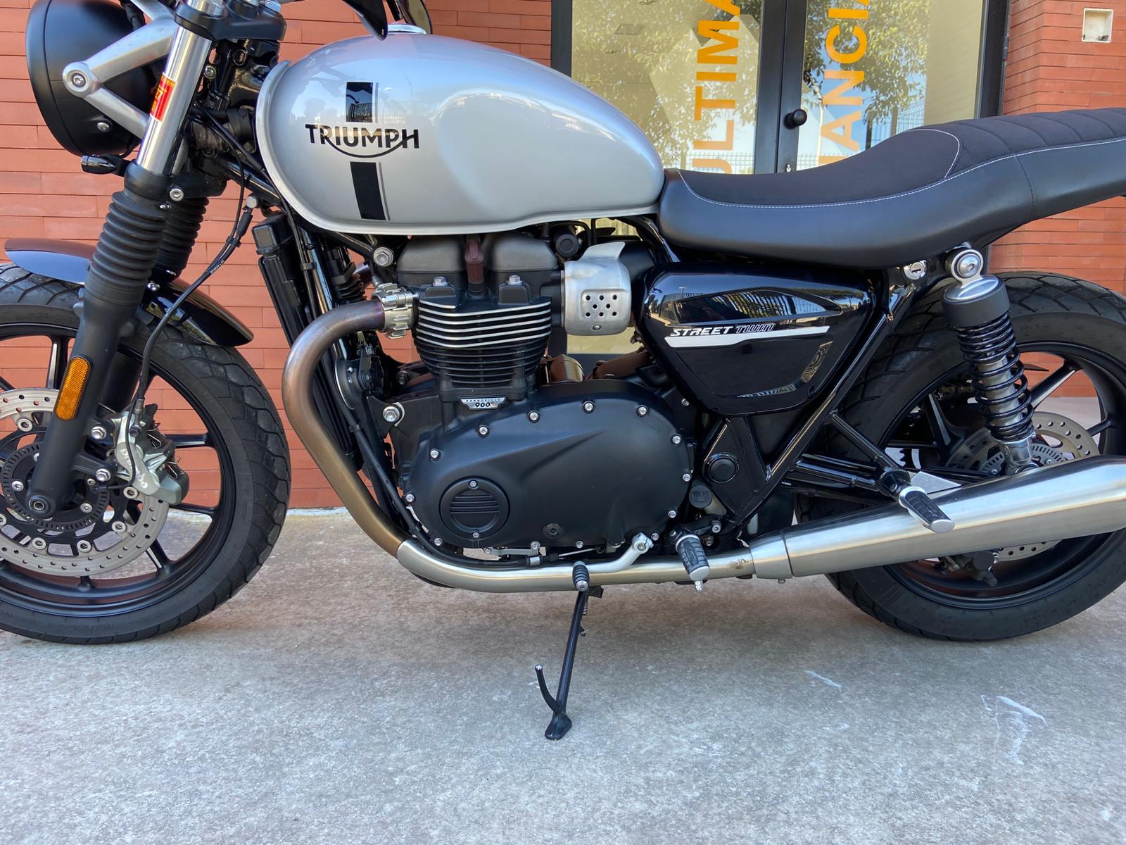 TRIUMPH STREET TWIN, 900cc., 65 CV., gris, matriculada el 08/2019, con 28.912 Km., ABS, control de tracción, ordenador de a bordo, modos de conducción, retrovisores, intermitentes, porta matrículas, (+ piezas originales de serie), facturas de revisiones, ITV en vigor hasta Agosto de 2027; garantía y transferencia incluidas. Limitable para el A2. LA GARANTÍA ES DE UN AÑO DE MOTOR Y CAJA DE CAMBIOS. FINANCIACIÓN.