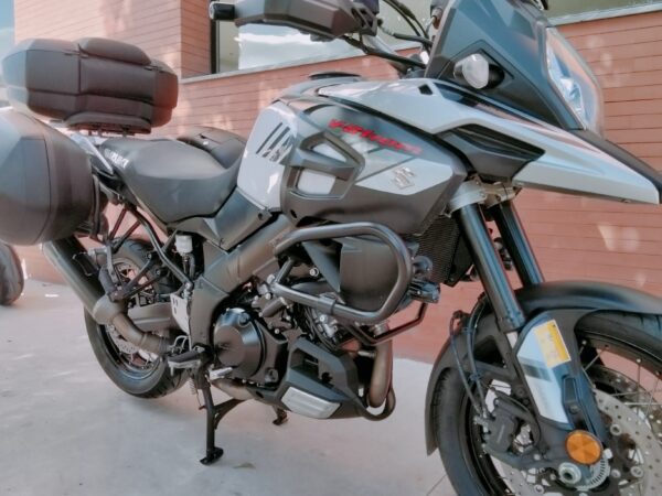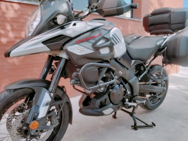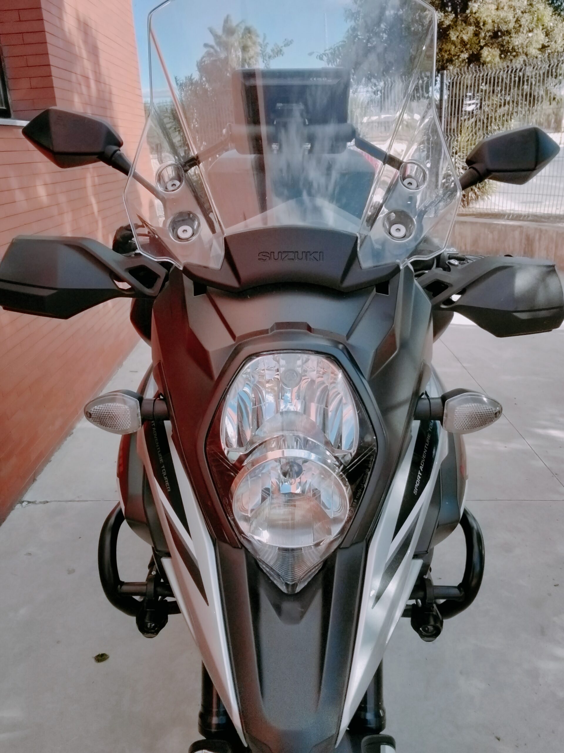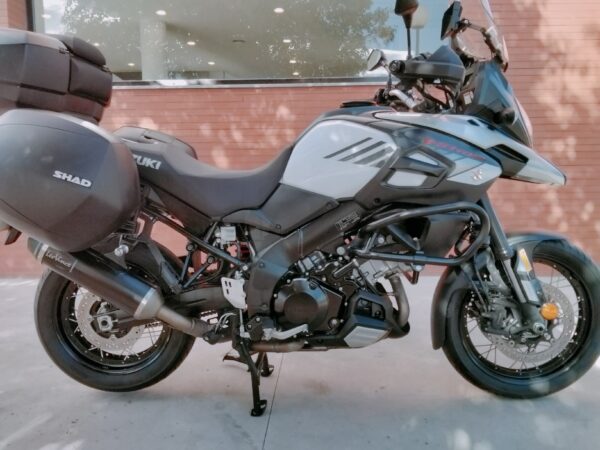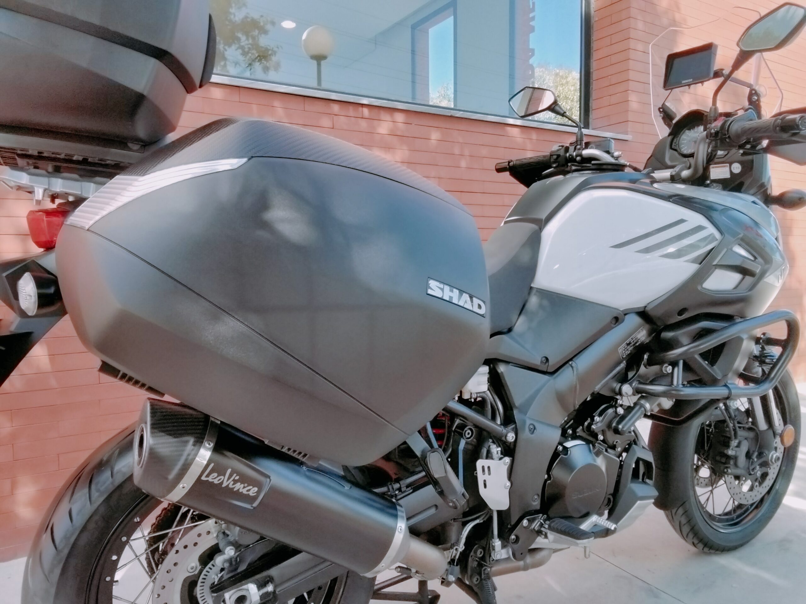 SUZUKI V-STROM 1000 XT, 100 CV., blanca y gris, matriculada el 2/2018, con 49.859 Km., ABS, control de tracción, tres maletas Shad, escape Leovince homologado, cúpula, defensas, cubre cárter, cubre manos, caballete central, ITV en vigor hasta Febrero de 2026 y transferencia incluida. GARANTÍA DE 1 AÑO. FINANCIACIÓN.