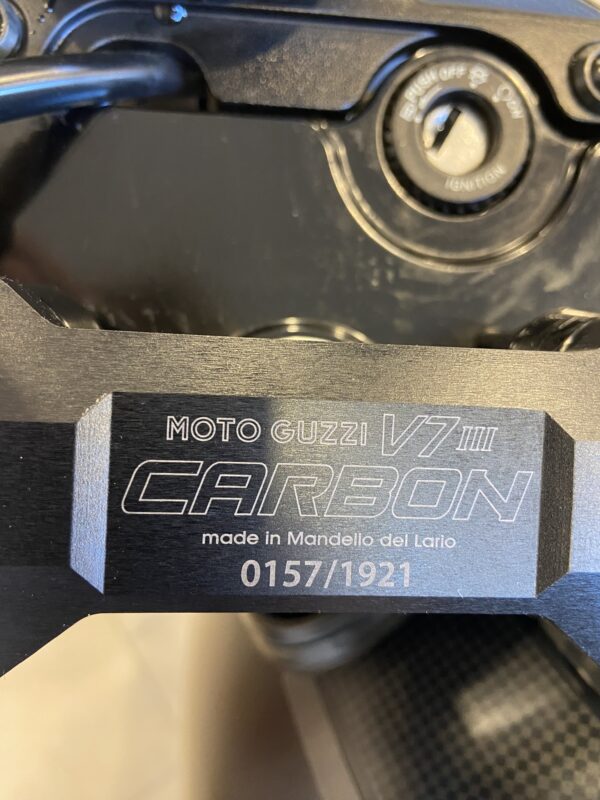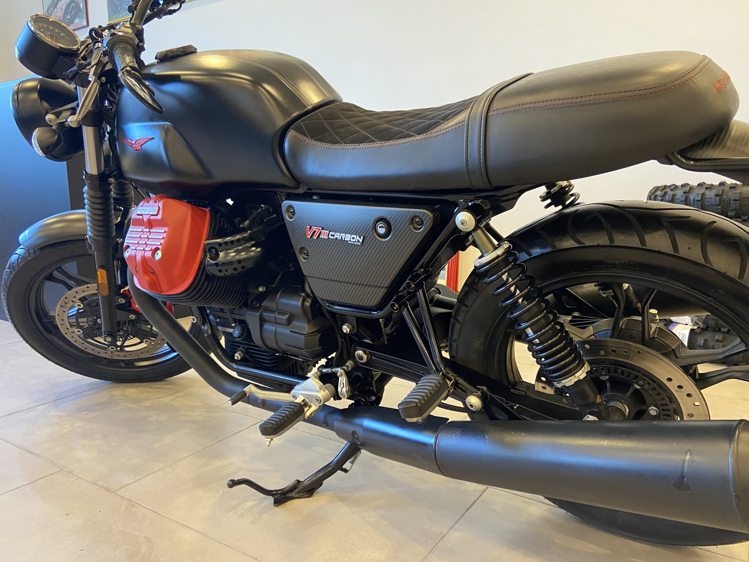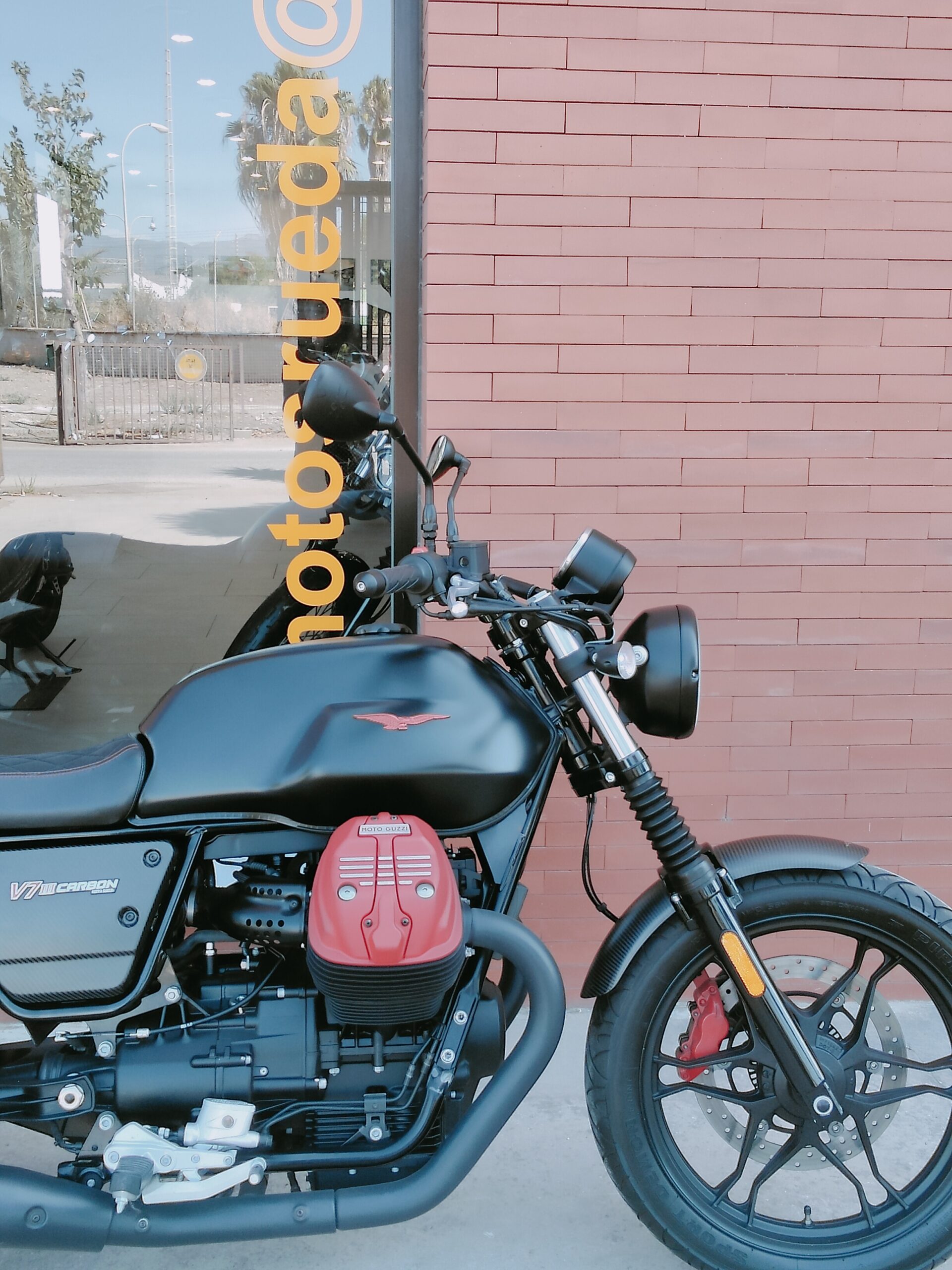 MOTO GUZZI V7 III DARK CARBON, 52 CV., 750cc., negra mate, EDICIÓN LIMITADA, matriculada el 10/2020, con 7.661 Km., ABS, control de tracción MGCT, ITV en vigor hasta Noviembre de 2026 y transferencia incluida. Limitable para el A2. GARANTÍA DE 1 AÑO. FINANCIACIÓN.